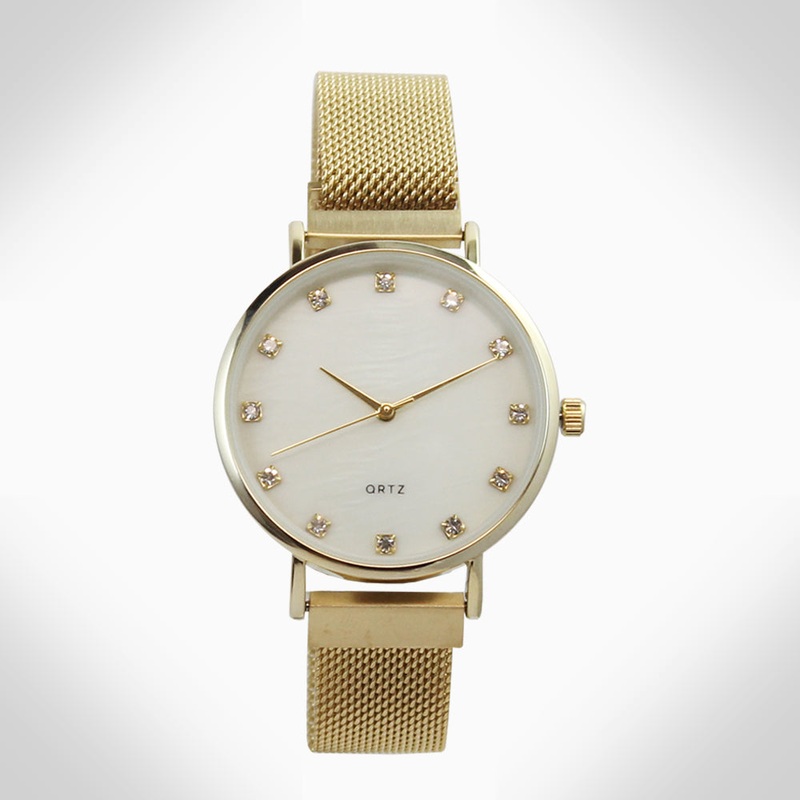 Elegant watch featuring sparkling crystals accents onthe watch faceEmbellished with crystals, which are set by Jimmy Crystal's expert craftsmanship. This product provides unparalleled aesthetics to transcend eleganceStainless steel case backMagnetic metal