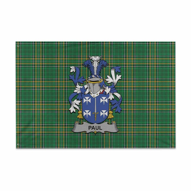 Paul Irish Clan Tartan House Flag with Coat of Arms