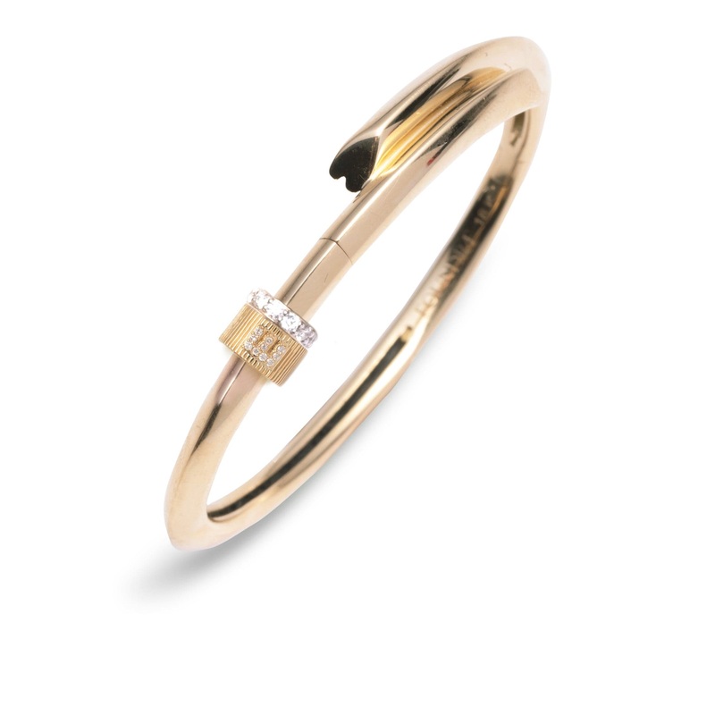 DescriptionCrafted in 18 karat Yellow Gold, this Strong Heart bangle symbolizes love. Love is what makes our heart beat. From the same concept as our Strong Hearts Chain, each bangle is drawn from a heart, ending and beginning with love, yet the heart is s