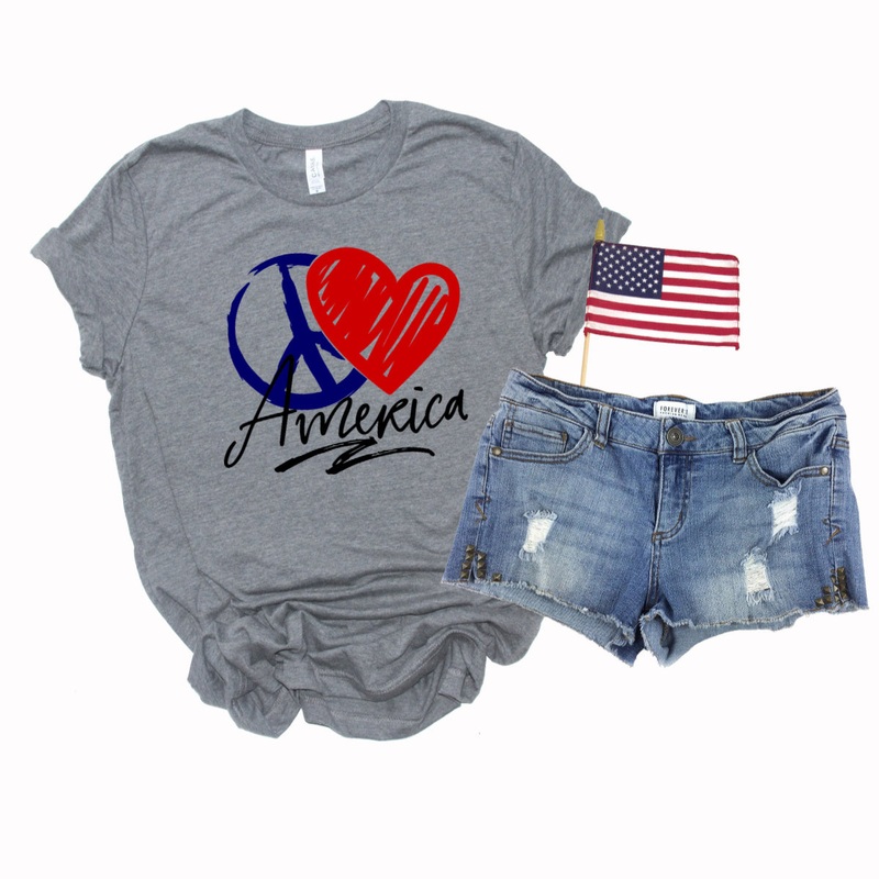 Love the USA! Celebrate!Wear this with your favorite jeans, shorts, jean shirt, and baseball cap! Made of super-soft fabric, this boyfriend fit tee is sure to be your favorite tee!This updated unisex essential fits like a well-loved favorite, featuring a c