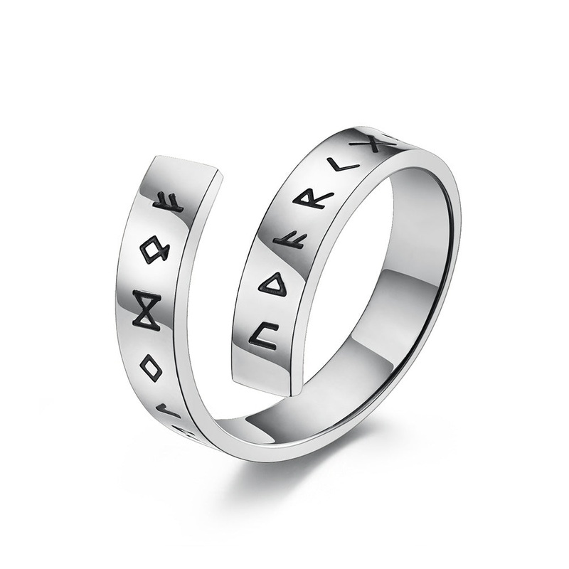 Embrace the cold wind of adventure with this Viking-inspired jewelry that resonates with strength and bravery. Make your mark and express your unique style with the Cross-border AliExpress Viking Viking text symbol open ring ring personalized titanium steel cold wind jewelry for men today!