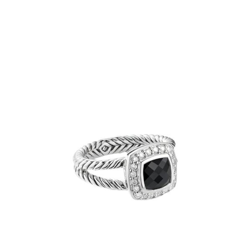 Sterling Silver Faceted Black Onyx, 7 x 7mm, Pav Diamonds, 0.17 total carat weight, Ring, 4-11mm Splitshank 6