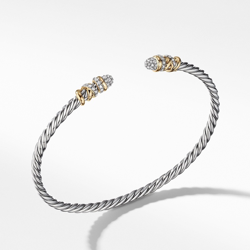 Sterling Silver with 18-karat Yellow Gold Pav Diamonds, 0.30 total carat weight, Bracelet, 3mm M