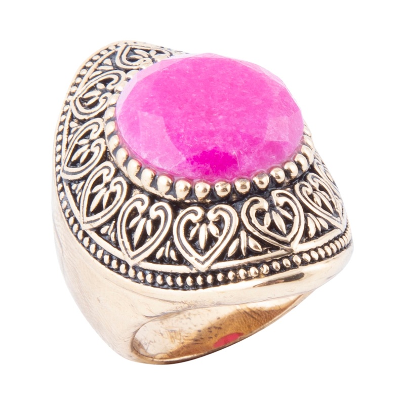 Make an unforgettable impression with this extraordinary ring, meticulously handcrafted featuring a genuine pink agate stone dramatically enhanced by luxurious bronze surroundings. The spectacular gemstone, measuring precisely .62" in length and .62" at it