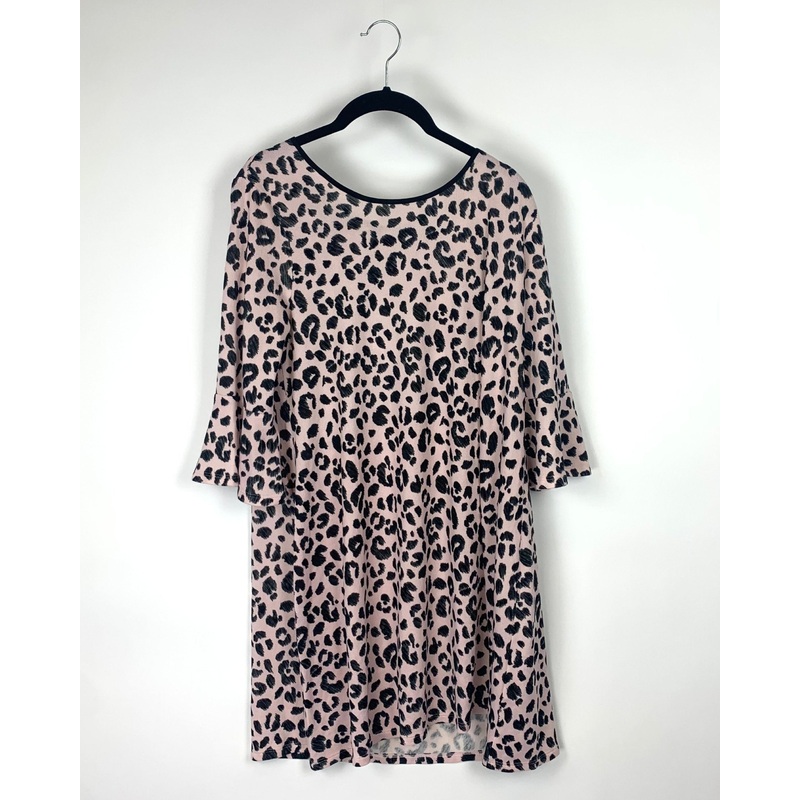 Kate Spade pink nightgown with black cheetah print, black trim neckline and 3/4 ruffle trim sleeves