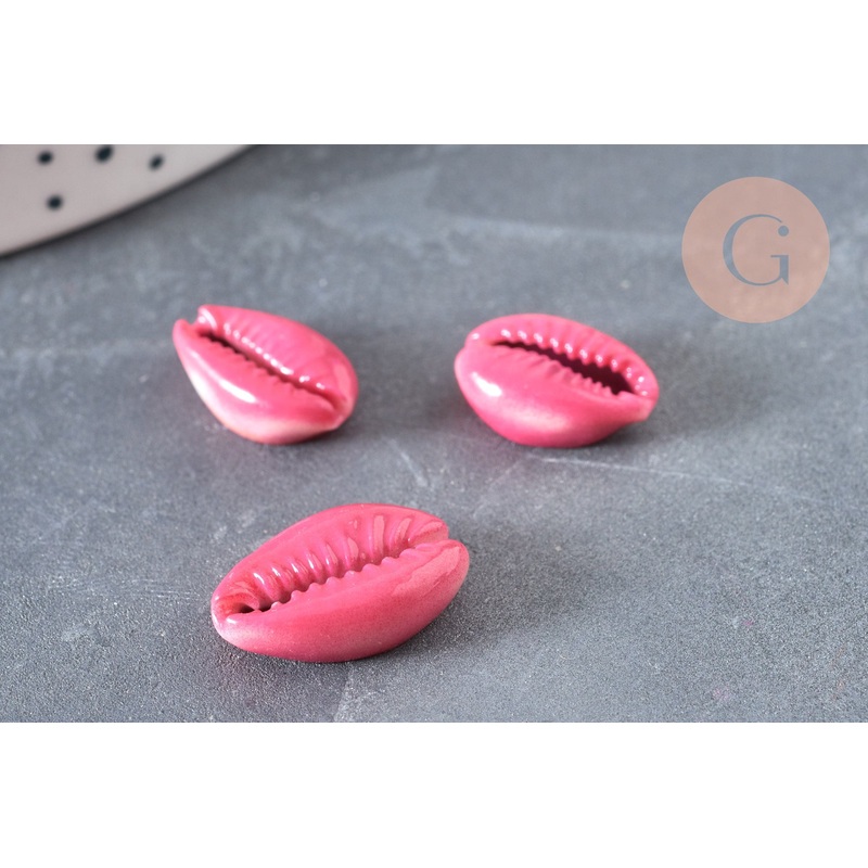 Pink cowrie shell pendant, natural shell, pink cowrie, shell jewelry, 15mm, x5 (G1530)