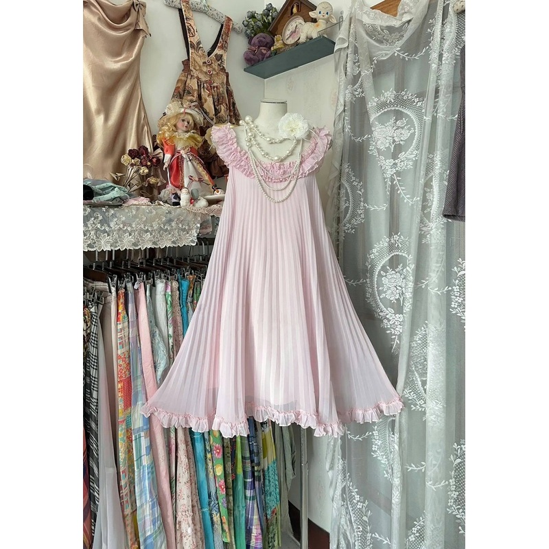 Pink Ruffle Short Dress Pleated Chiffon Birthday Dress J6687