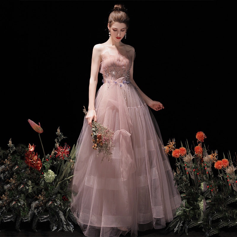 Product NO. :295Dress style: A lineFabric:TulleColor: PinkWaist type:Mid waistSize: XS,S,M,L,XL,XXL,XXXLDress length: LongSleeve length: Sleeveless