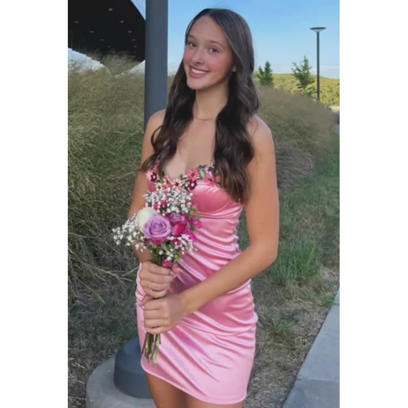 Pink Straps Appliques Satin Homecoming Party Dress J6987