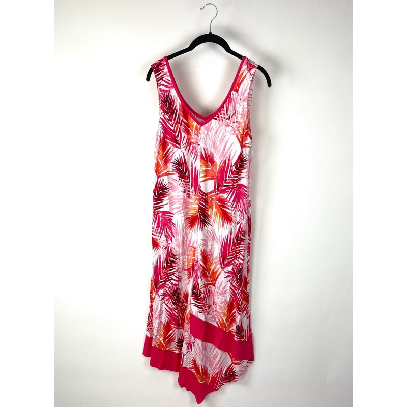 Brand new - donated from the designer.Ellen Tracy soft and cozy pink, white and orange tropical print sleevelessnightgown with v-neckline and overlapping diagonal fabric.Size small (Size 4-6)95% rayon, 5% spandexEstimated Original Retail Price: $55.00*This