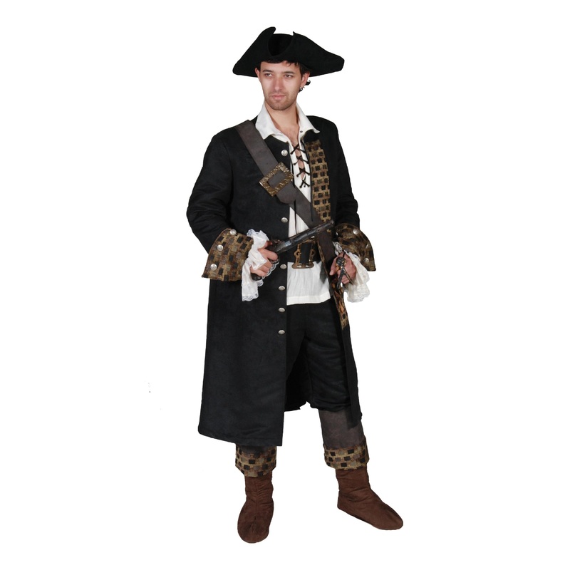 Includes: Long Straight Faux Suede and Jacquard Jacket, Knickers, Shirt, Boot Covers, Leatherette Waist Belt and Leatherette Shoulder Belt.7 Pieces.Color: Black (shown)Size: M (40), L (42-44), XL (48), 2XL (52)Superior Quality / Made in USA /High-quality f