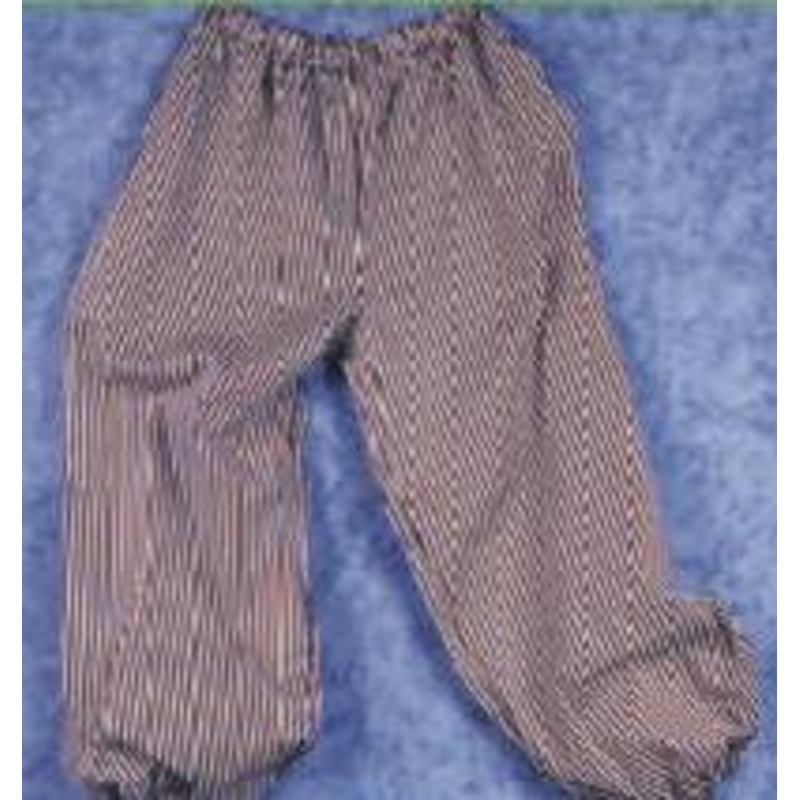 Striped Cotton w/billowing styled pants leg & elastic at the waist & ankle.