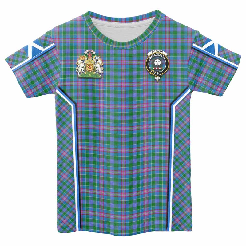Pitcairn Tartan Crest Kid T-shirt Scotland Coat of Arm Flag Style