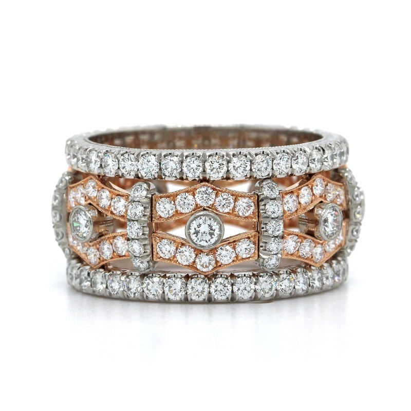 Platinum and 18K Rose Gold Wide Diamond Band