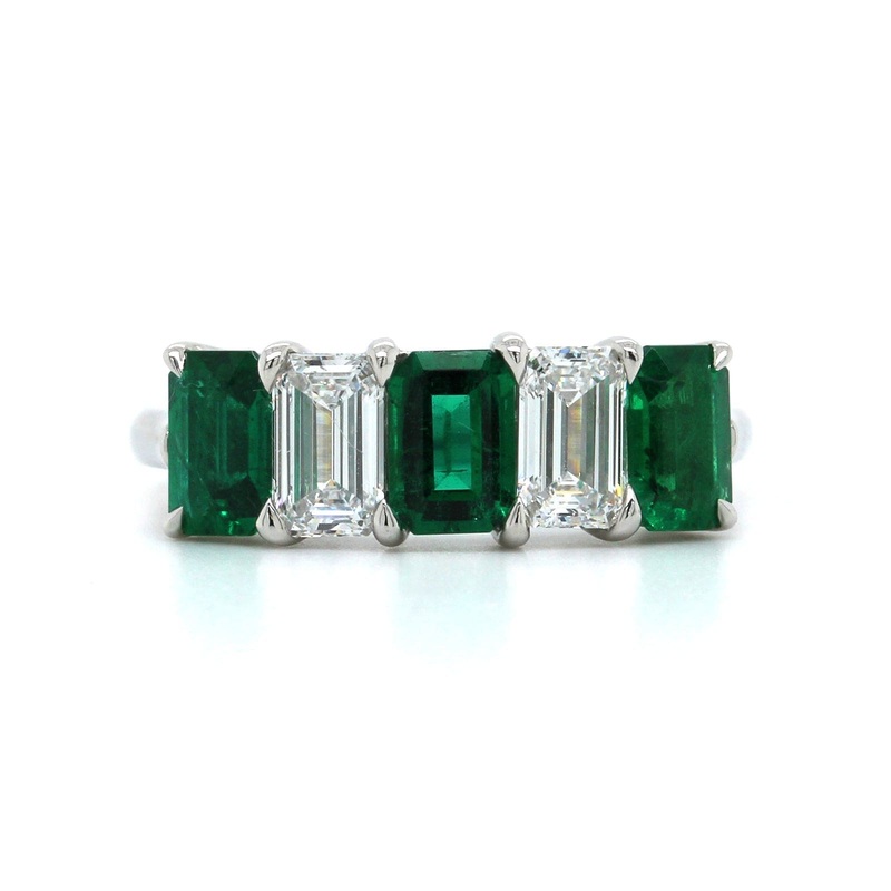 5 stone emerald cut emerald and diamond band set in a handmade setting in platinum.