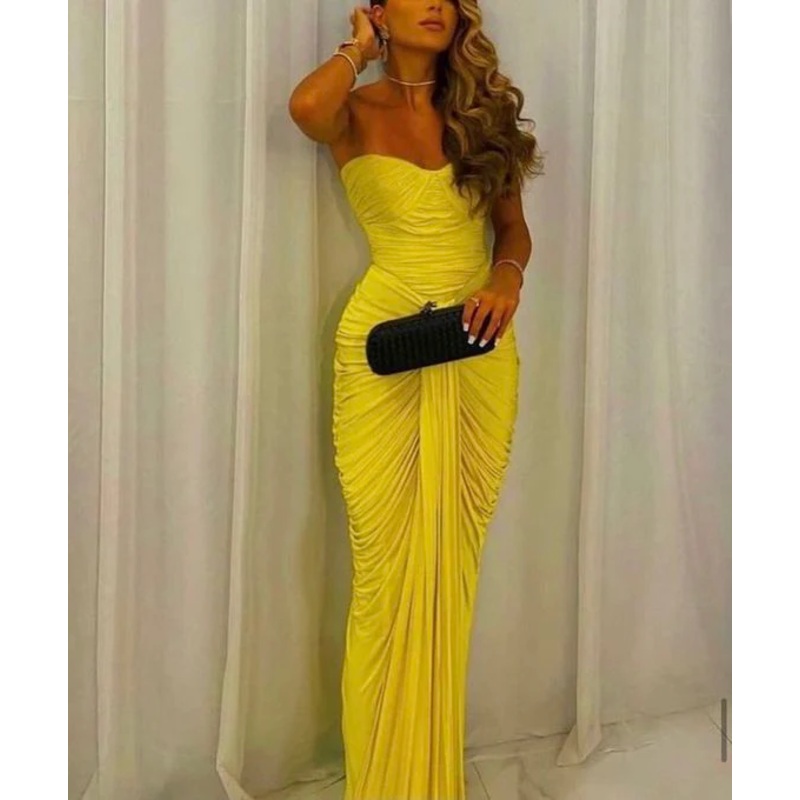 Pleated Yellow Wedding Guest Dress Sheath Evening Dress J6553