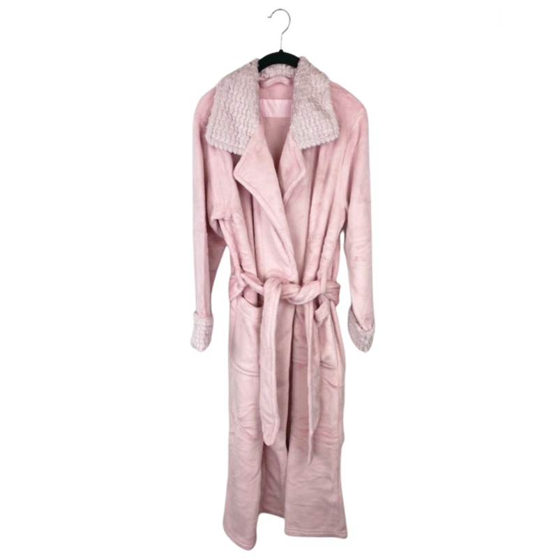 Brand new - donated from the designerPlush long pink robe with a light pink collar and sleeve cuffs, two pockets, an inside tie to close, and a belt.Size Small (size 4/6)Estimated Original Retail Price: $50.00*This is a sample piece donated from the design