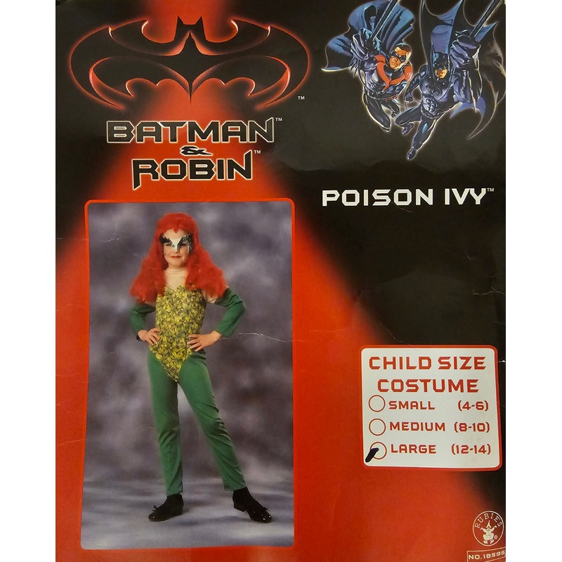 Rubies Costume Co. Poison Ivy Child SizeIncludes: Jumpsuit & EyemaskSize: Child Large (12-14)Color: As shownLicensed & Trademarked by DC ComicsR18595