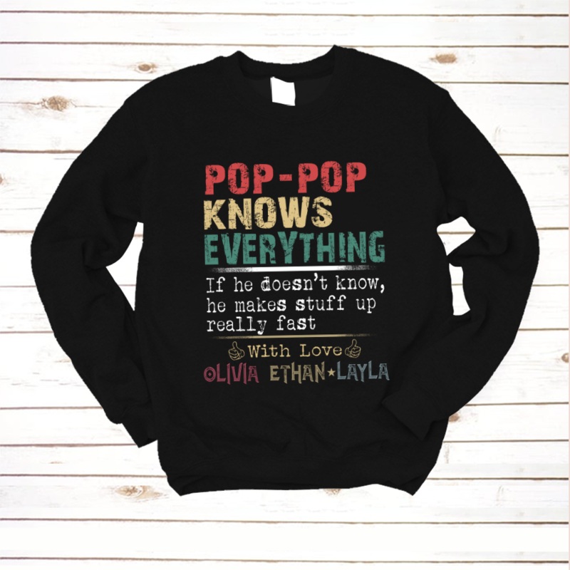 Pop Pop Know everything With grandkidsCute and Creative Designs: Exquisite and lovely patterns, special elements make the perfect designs. The people who wear them will be proud. At the same time, they also show the love for family.Suitable for many occasi