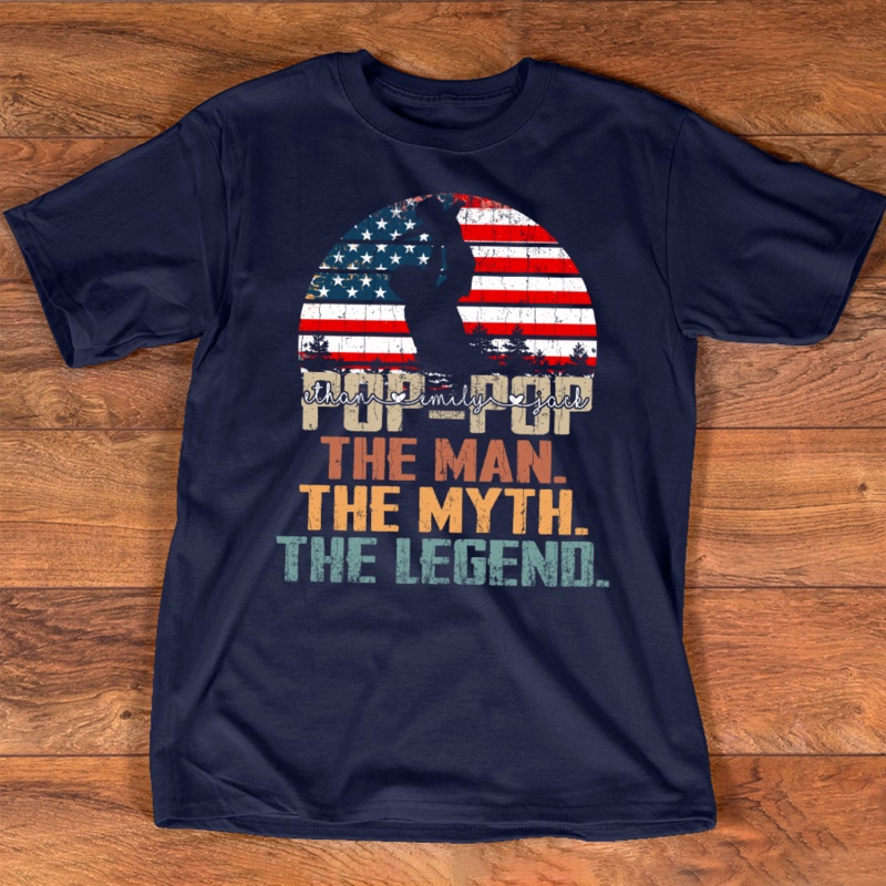 Pop Pop Man Myth Legend KidsGreat as Birthday gifts or Holiday presents. This adorable item can be designed upon anyone's wish with any title.Please enter:1. Nickname: Papa, Grandpa, Pawpaw, Pop-Pop, Papaw ...etc.2. Kids' Names wanted on the shirt (Names s
