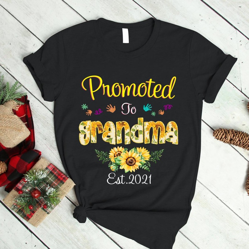 Promoted to Grandma Est 2021 Sunflower ArtHigh-quality fabric material with lots of beautiful colors for the whole family, mimi, nana,grandma, grandpa, papa, daddy, baby, mommy, brother...This design also can be an awesome present for grandparent day, pare