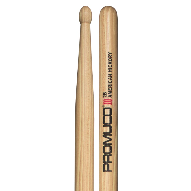 American Hickory - 2B Product Code:18012B A dense wood, Hickory has very little flex for a powerful and pronounced sound. A great all round, balanced drumstick capable of withstanding plenty of shock. DIAMETER: 1.6cm GENERAL: American Hickory LENGTH: 40.6c
