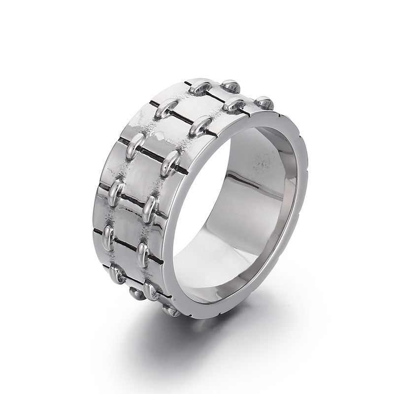 Punk-Inspired Stainless Steel Men’s Ring with Creative Laser Lettering