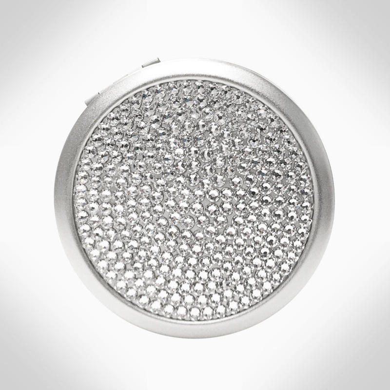 - Embellished with sparkling crystals, this elegant compact mirror willcapture people’s eyes as soon as you pull it out of the purse