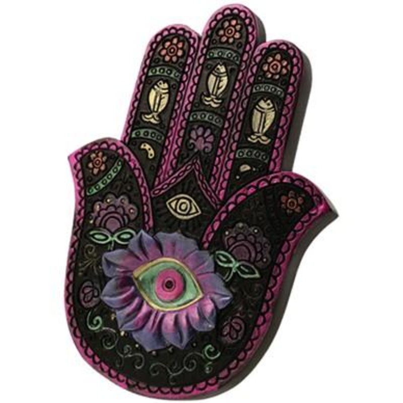Polyresin burner withpurplehamsa design. (3.75″ x 5″)
