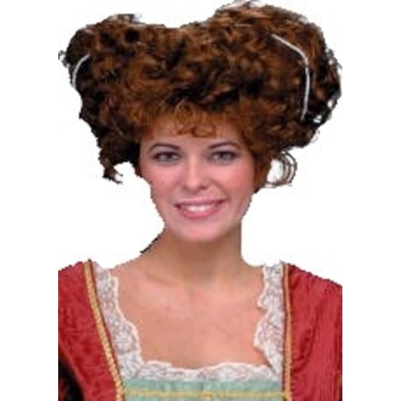 ALHW232circa 1585-1590Dark Auburn ringlet curls in 2 large, loose buns oneither side of the head and accented withstrands of pearls for a regal look. Color: Auburn