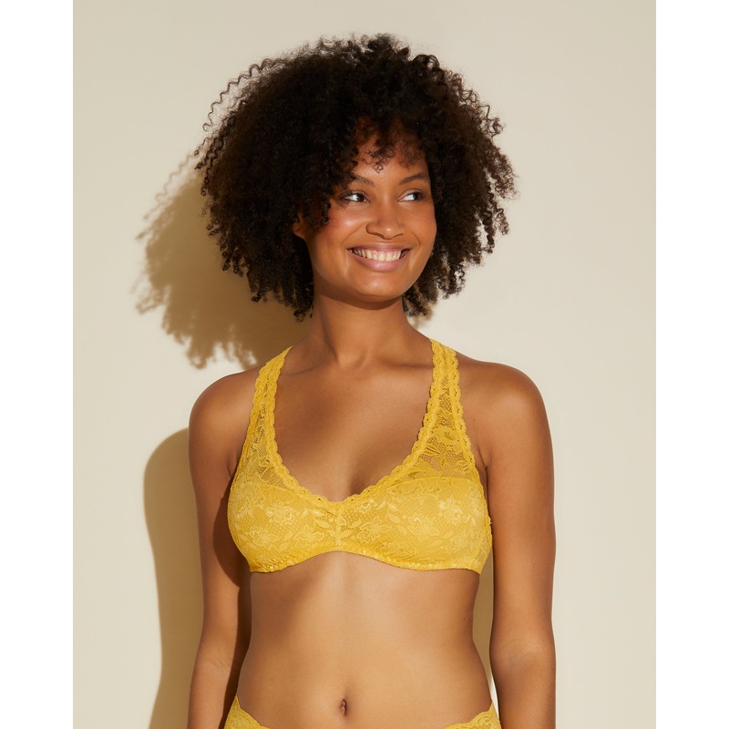 Bgelloser Racerback-Bralette.Sttzendes Unterbrustband.Mit Powermesh-Ftterung.Weiche, nicht-transparente, rundgezackte Stretch-Spitze, die sich flach dem Krper anschmiegt.Zum einfachen berziehen ohne Verschluss.91% polyamide, 9% elastaneLace Made in ItalySt