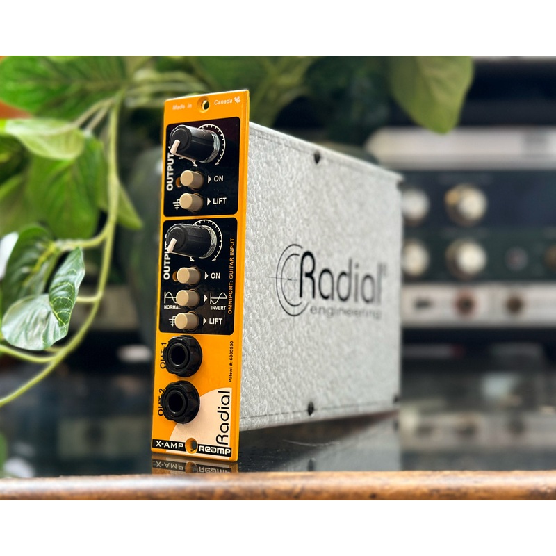 The Radial X-Amp 500 is a 500-series active reamplifier, designed to send recorded tracks back through guitar amps and pedals with pristine signal integrity. It features a Class-A active circuit for low-noise performance, a transformer-isolated dual-output