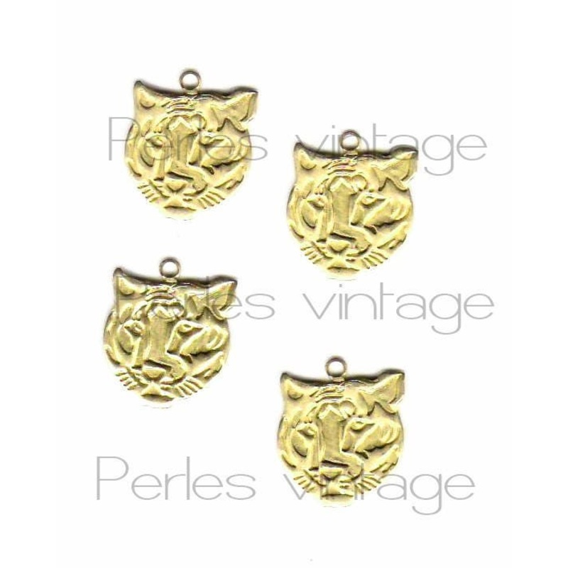Gold raw brass tiger pendant, creative supplies, animal pendant, Brass pendant, creation, tiger charm, raw brass, 1.1cm, set of 5 A tiger head pendant in golden brass, ideal for creating a necklace or earrings on the theme of felines, the jungle, animals.