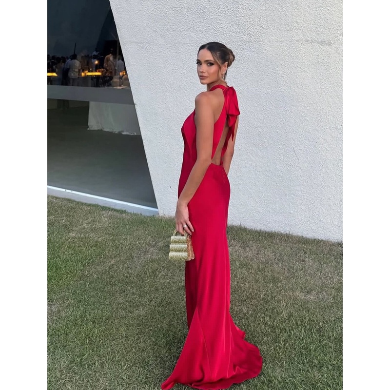 Red Mermaid Satin Evening Dress Backless Formal Party Dress J7408
