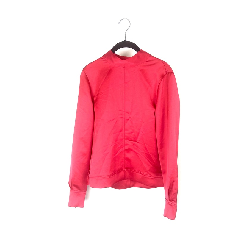 Brand new- donated from the designerAutograph red silk-like long sleeve blouse with a faux turtle-neck necklineSize 2100% PolyesterEstimated original retail price: $55.00*This is a sample piece donated by the designer to support the Fashion Foundation's mi