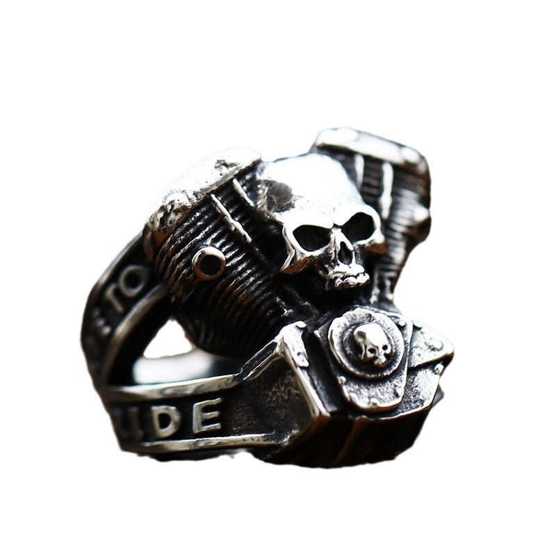 Elevate Your Style with the Retro Engine Wrench Skull Ring Unleash your inner rebel with our European and American locomotive style stainless steel men's ring. This distinctive retro titanium steel engine wrench skull ring is designed for the modern man wh