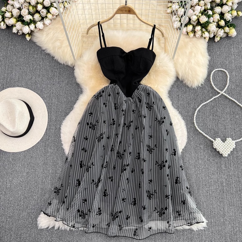 Product NO. :1653Size: S M LCollar type: V neckWaist type: high waistColour: BlackSleeve: SleevelessSkirt length: mid-length skirtSize details(cm):SBust84Waist68Full length108MBust88Waist72Full length109LBust92 Waist76Full length110