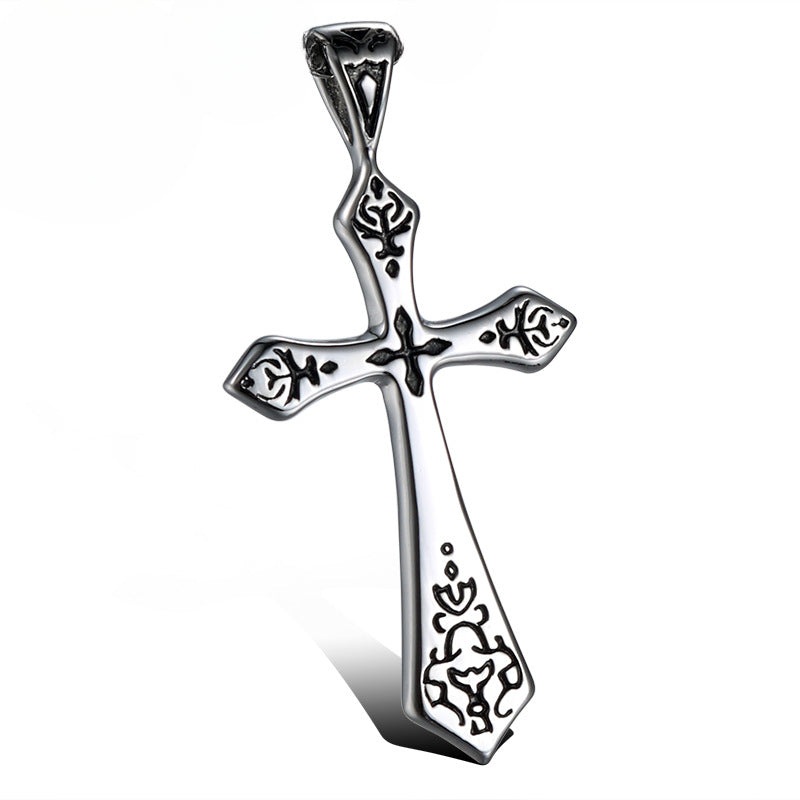 Discover the perfect blend of modern elegance and vintage charm with our European and American fashion double cross titanium steel pendant. This exquisite piece of jewelry is designed for the contemporary man who appreciates personalized and unique accessories.