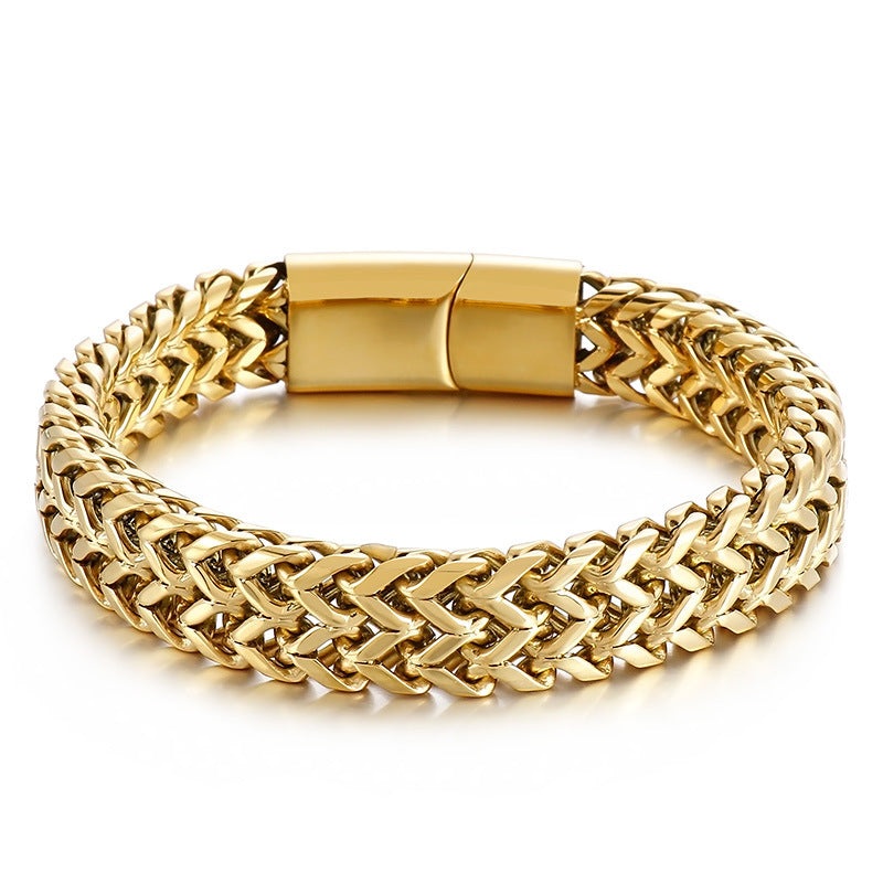 Retro-Inspired Titanium Steel Dual-Row Keel Bracelet for Men Rock Hip-Hop Personality with Front and Back Chain Design