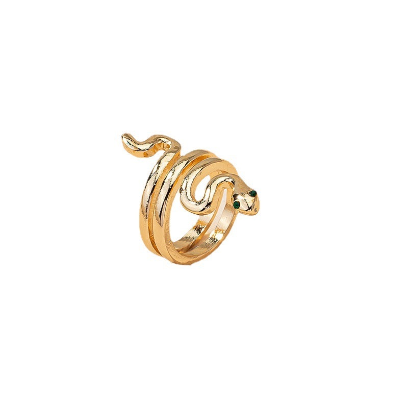 Retro Metal Snake Ring with Green Eye Detail – Vienna Verve Collection