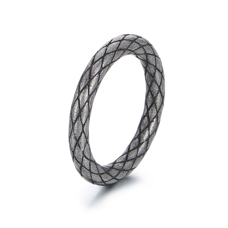 Retro Punk Style Stainless Steel Snake Ring with Rhombus Pattern for Men – Trendy Old Circle Design