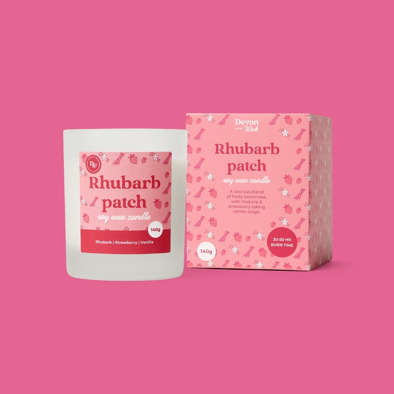 Rhubarb | Strawberry | Vanilla Step into the enchanting world of our Rhubarb Patch fragrance, where a stroll through a bustling fruit-filled marketplace awaits. Immerse yourself in the luscious blend of fruity sweetness, with the vibrant notes of rhubarb &