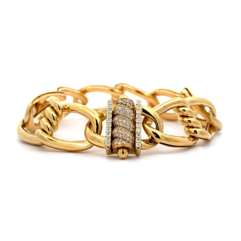 18k yellow gold bracelet featuring a diamond knot clasp.