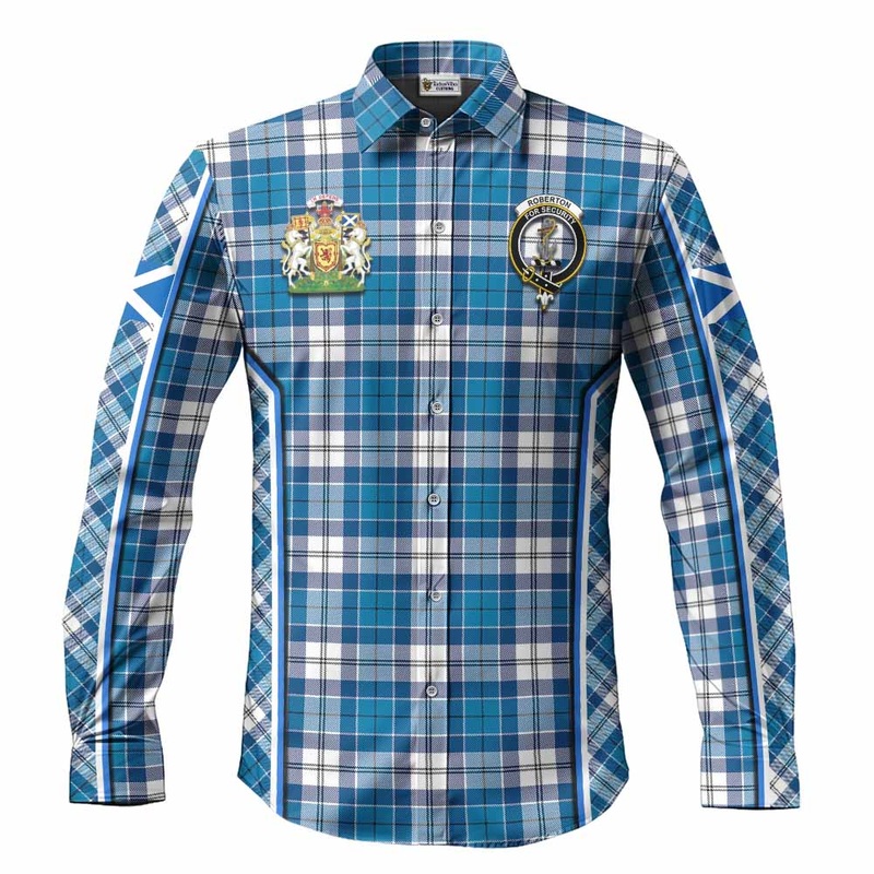 Roberton Tartan Crest Long Sleeve Button Shirts Scotland Coat of Arm Flag Style