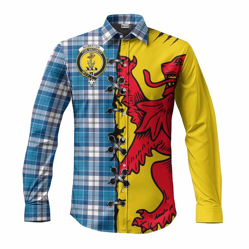 Roberton Tartan Family Crest Long Sleeve Button Shirts Lion Rampant Honor
