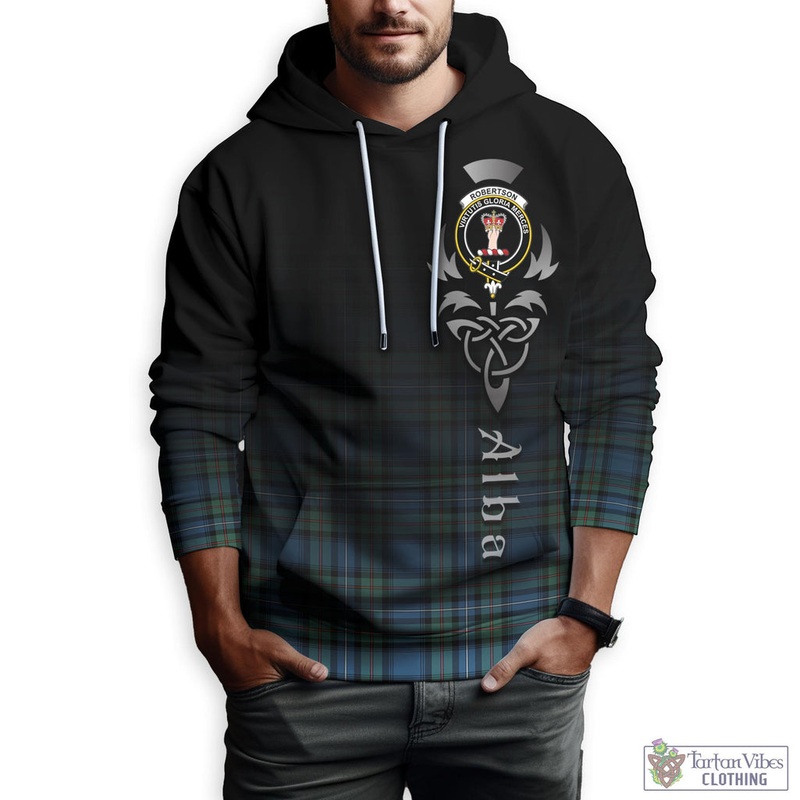 Robertson Hunting Ancient Tartan Hoodie Featuring Alba Gu Brath Family Crest Celtic Inspired Highlight Made by Materials: Polyester. About this item Embrace the charm of Scottish culture with this eye-catching tartan hoodie from . Crafted with attention to