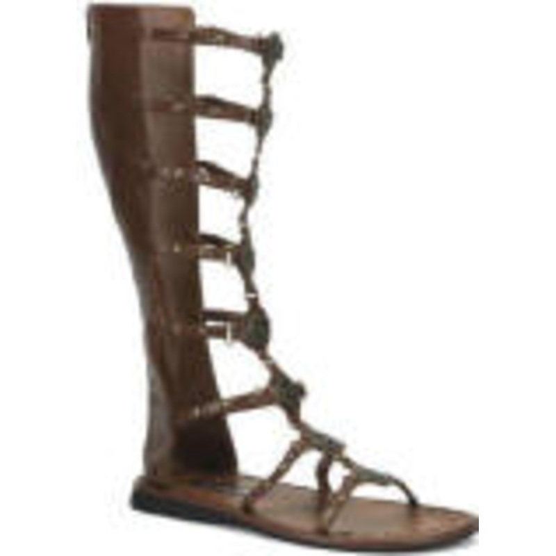 Faux leather (PU) buckled Roman Sandal with fabric lining and padded foot insert.Full length back zipper for easy on/off..75" heel and rubber soles.Color: Black, BrownSize: S (8-9), M (10-11), L (12-13), XL (14-15)XL calf measures 15.5" and boot is 16" hig