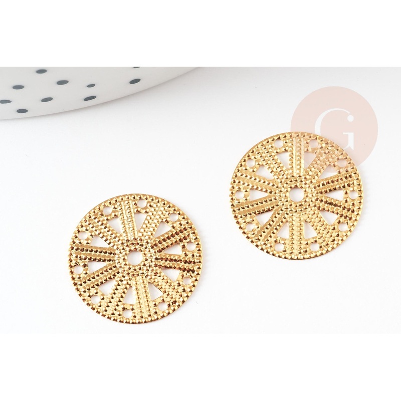 Round lace medal pendant in gold-plated steel, gold-plated pendant, nickel-free, gold-plated steel, gold medal, 17.5mm, x2 G4913