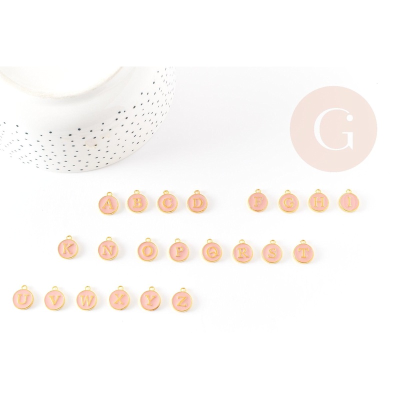 Round pendant in gold-plated zamac with light pink enamel initials 14mm, Women’s pendant, gold-plated metal, initial pendant, 14mm, x1 G2933