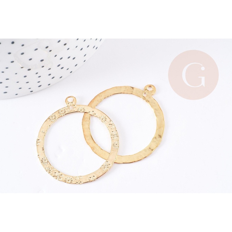 A gold-plated steel pendant medal, hammered with sun and flower motifs. Lovely for creating a pair of earrings or a fine necklace. In gold stainless steel Dimensions: Length: 43mm Width: 38.5mm Thickness: 0.6mm Ring: 1.6mm. Sold individually 304 stainless